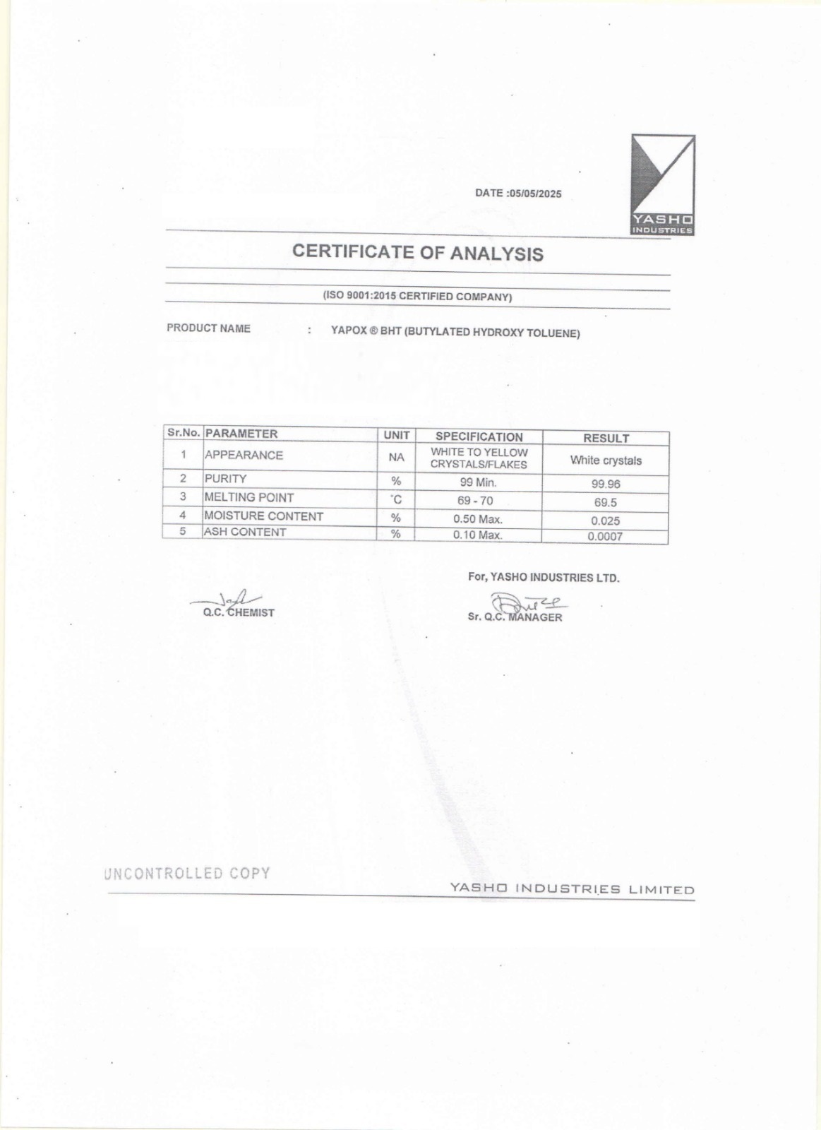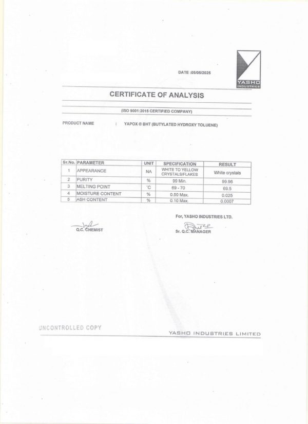 شرکت رهروان تجارت وارد کننده بوتیل هیدروکسی تولوئن و سایر محصولات شیمیایی صنایع غذایی می باشد. جهت سفارش کالا با با کارشناسان فروش در تماس باشید.